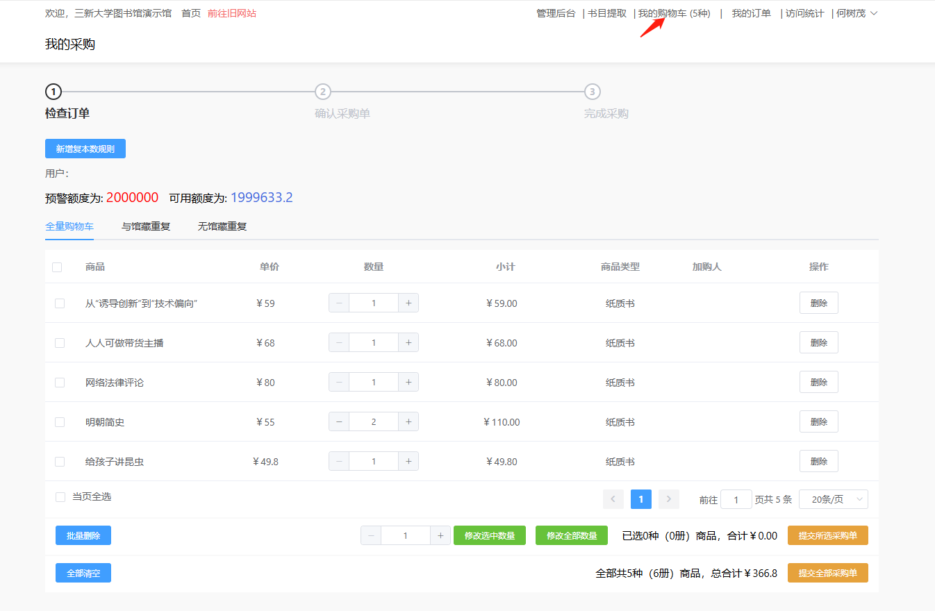 (3)确认采购单:✔全选,点击确认采购单,即可完成线上选购;