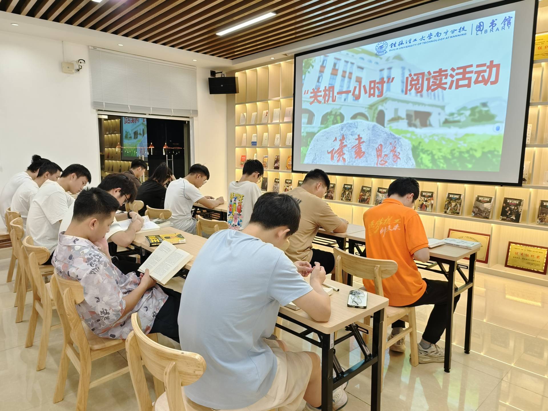 为培养学生的阅读兴趣,丰富学生的校园文化生活,10月31日晚,图书馆在七楼开展第四期“关机一小时”阅读活动,吸引了近三百名同学到场参与。
