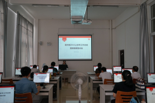 7月14-15日,图书馆图书馆召开2015上半年工作总结暨数据库培训会,图书馆全体馆员参加了会议,会议由图书馆馆长黄昭彦主持。