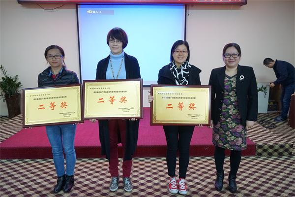 12月11日,2015年广西高教学会图书馆专业委员会高职高专分委会工作与学术年会暨第四届广西高职高专图书馆业务技能比赛颁奖典礼在广西南宁市天妃商务酒店举行。本次业务技能比赛的主题是 “践行图书馆学五定律,提升图书馆服务水平”案例大赛,大赛由广西高教学会图书馆专业委员会高职高专分委会主办,设一等奖2名、二等奖3名、三等奖5名及优秀奖若干名。经专家评审,我校图书馆的参赛作品“精准定位,灵动空间”脱颖而出,荣获二等奖。会议还安排获奖代表上台进行案例解析和经验交流。