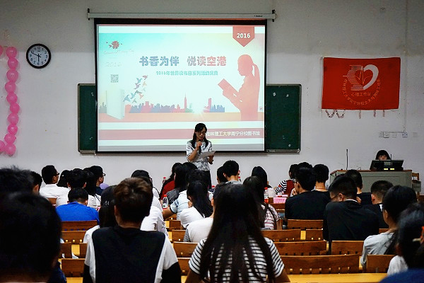 4月21日下午,“书香为伴 悦读空港”2016年世界读书日系列活动庆典在教学楼8103教室隆重举行。分校副校长陈东莲,图书馆馆长黄昭彦,副馆长蒙童慧,土木与测绘工程系教师樊泽慧、黄华出席了庆典。一百余名师生读者参加了庆典活动。本次读书活动庆典得到了土木与测绘工程系心理工作站和暮月文学社的大力协助。
