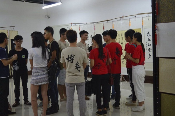 2016年6月4日-6月12日,博艺书画协会在图书馆二楼举办了以“感恩母校,四子牵手墨缘”为主题的书画展活动,博艺书画协会指导老师莫洪生、图书馆馆长黄昭彦等出席此次活动,我校广大学生以及各高校书画协会同学也积极参加到此次活动中。