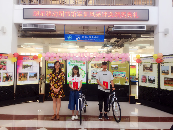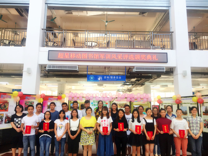 11月17日下午,图书馆在三楼大厅举行了“军训风采照征集评选活动”颁奖仪式,图书馆馆长黄昭彦、副馆长蒙童慧及图书馆各岗位老师代表出席此次典礼,全体获奖人员以及部分读者参加典礼。