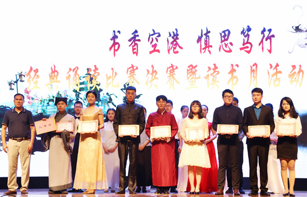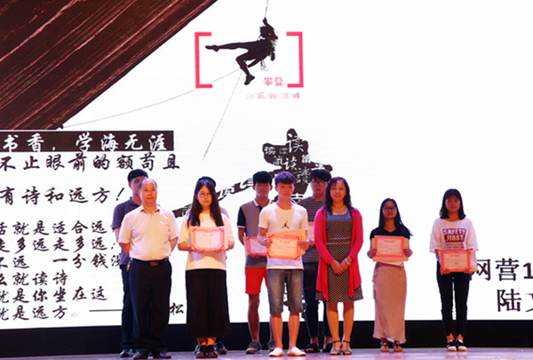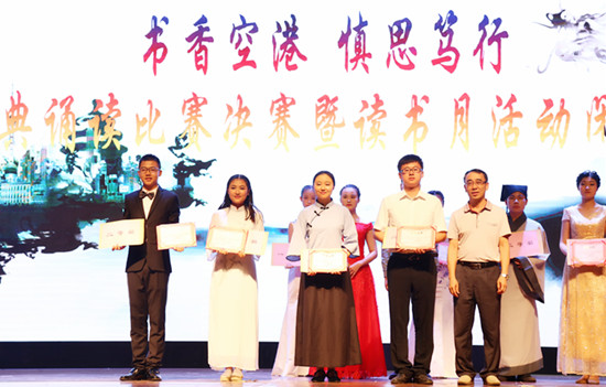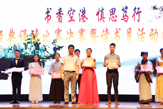随后,颁发了年度阅读之星、“书香空港慎思笃行”海报设计大赛和经典诵读比赛奖项,分校领导分别为获奖人员颁奖。