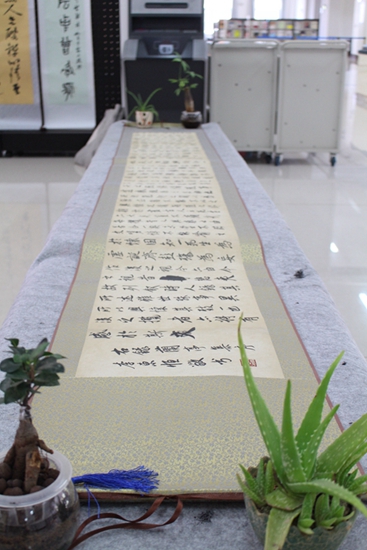 书画展陶冶情操,修身养性,它不仅富了广大学生的课余文化生活,展示当代大学生的风采,促进师生的互动,而且提升了审美情趣,进一步营造校园文化气氛,推动校园文化建设再上新台阶。