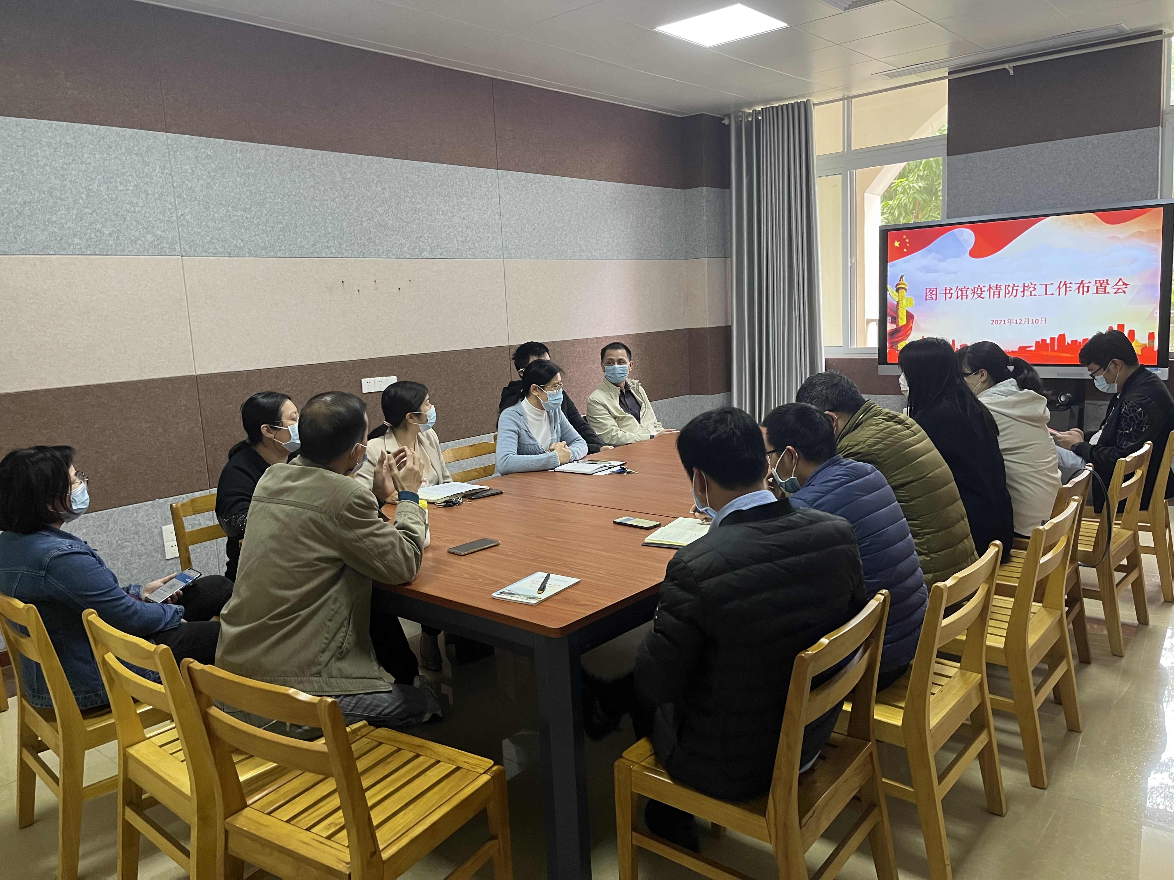 12月10日下午,图书馆在研讨室召开疫情防控工作布置会,会议由馆长蒙童慧主持,全体馆员参加会议。