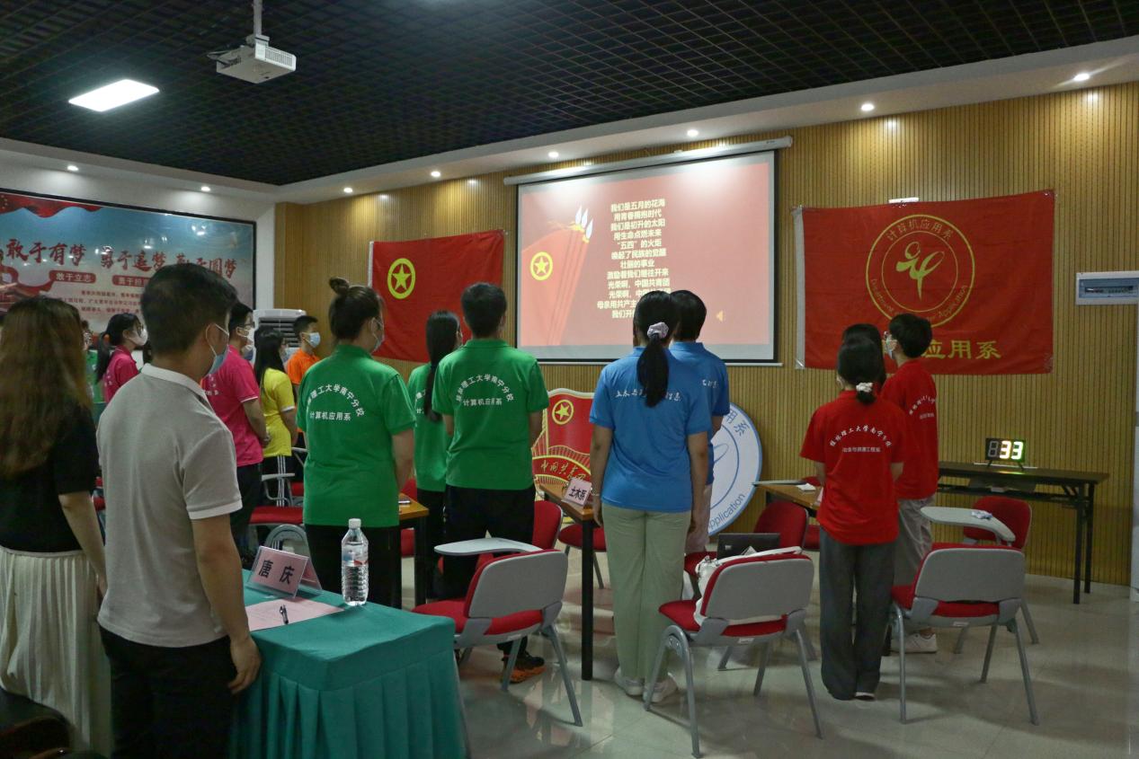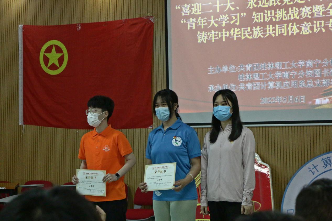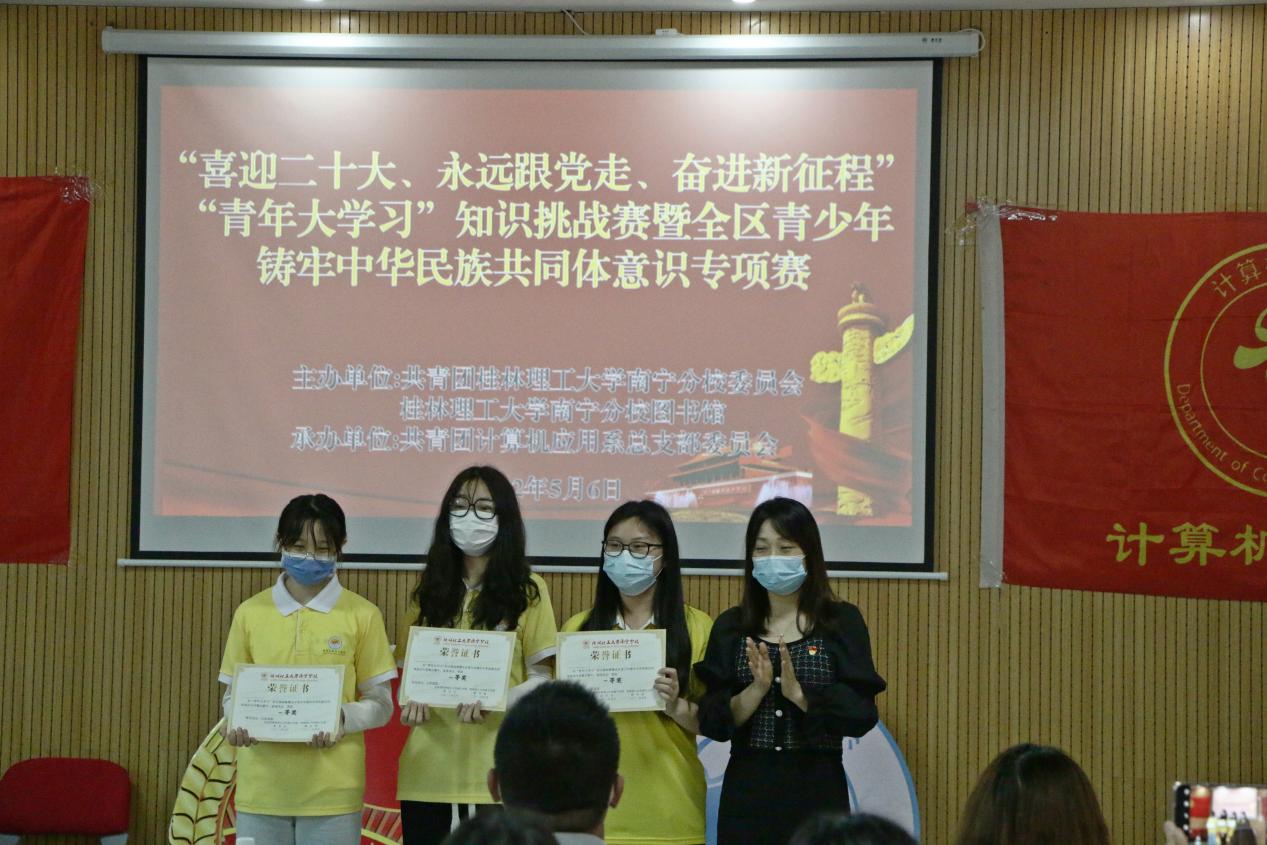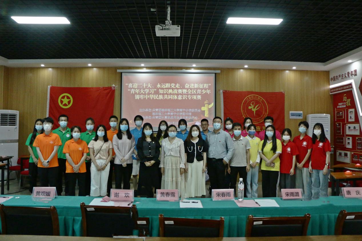 为深入贯彻落实习近平新时代中国特色社会主义思想,贯彻落实习近平总书记关于加强和改进民族工作的重要思想,深化党史学习教育成果,团结引领广大青年铸牢中华民族共同体意识,永远跟党走、奋进新征程,以优异成绩迎接党的二十大胜利召开,5月6日下午,由分校团委、图书馆联合主办,计算机应用系团总支承办的 “喜迎党的二十大、永远跟党走、奋进新征程”“青年大学习”知识挑战赛暨全区青少年铸牢中华民族共同体意识专项赛在青马书屋举行。分校团委副书记谢欢老师、分校图书馆黄春露老师以及六系辅导员、学生代表等80人参加本次知识竞赛。