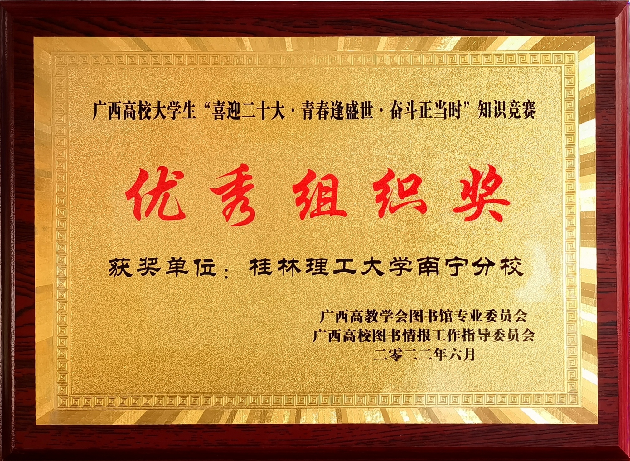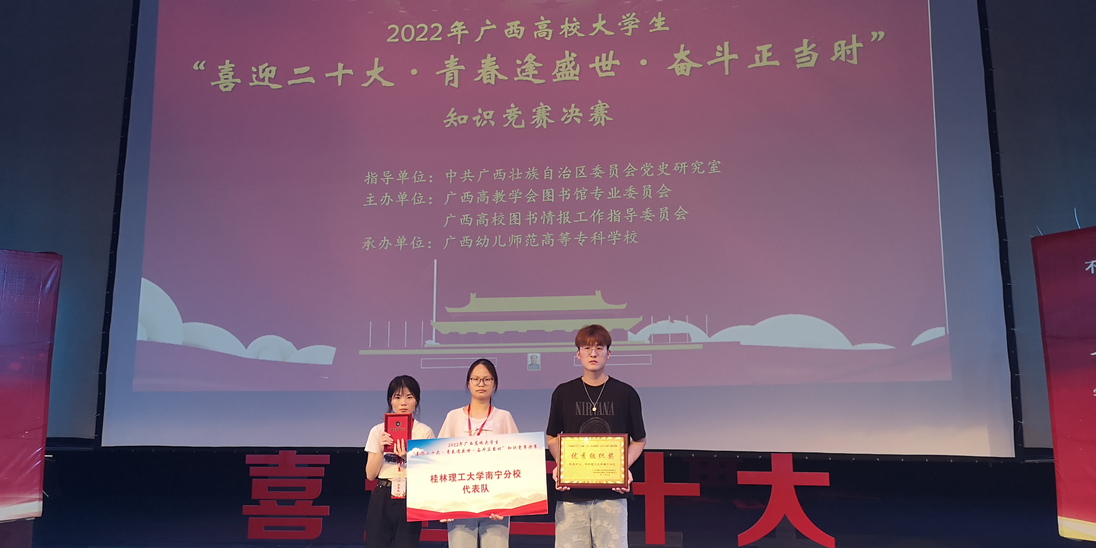 此次竞赛由广西高教学会图书馆专业委员会、广西本科高校图书情报工作指导委员会主办,自治区党委党史研究室指导,广西幼儿师范高等专科学校承办。本次竞赛经初赛、决赛历时两个多月,全区共59所高校参加初赛,24所高校参加决赛,学生参赛人数达3.9万名。决赛中,经过紧张激烈的比拼,由徐丽露、谢中毅、陈慧组成的太阳集团2138参赛代表队获得高职高专组三等奖的优秀成绩,太阳集团2138荣获“优秀组织奖”,黄春露老师荣获“优秀指导老师”称号。