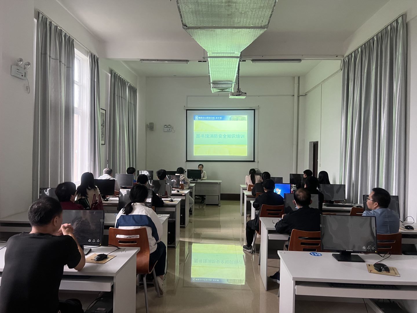 培训内容分为消防安全知识讲座和实操演练两部分。首先蒙童慧馆长以管理视角落实工作中的消防安全为主题,就火灾发生的要素和预防、不同火情的处置方式、消防疏散等基本知识进行了讲解。并通过图片和视频对火灾典型案例进行展示,直观体现了作为管理人员掌握消防知识的必要性。同时在讲解过程中结合实际工作情况进行了互动提问,使大家对消防安全有了更加深刻的认识。蒙童慧馆长强调,图书馆作为重点防火单位,要做到警钟长鸣,每一名图书馆工作人员都要具备相应的消防知识储备和安全责任意识。最后,图书馆消防管理员葛鸿基带领大家实地了解馆内疏散通道方位布局和相关知识,并进行消防器材操作演练。