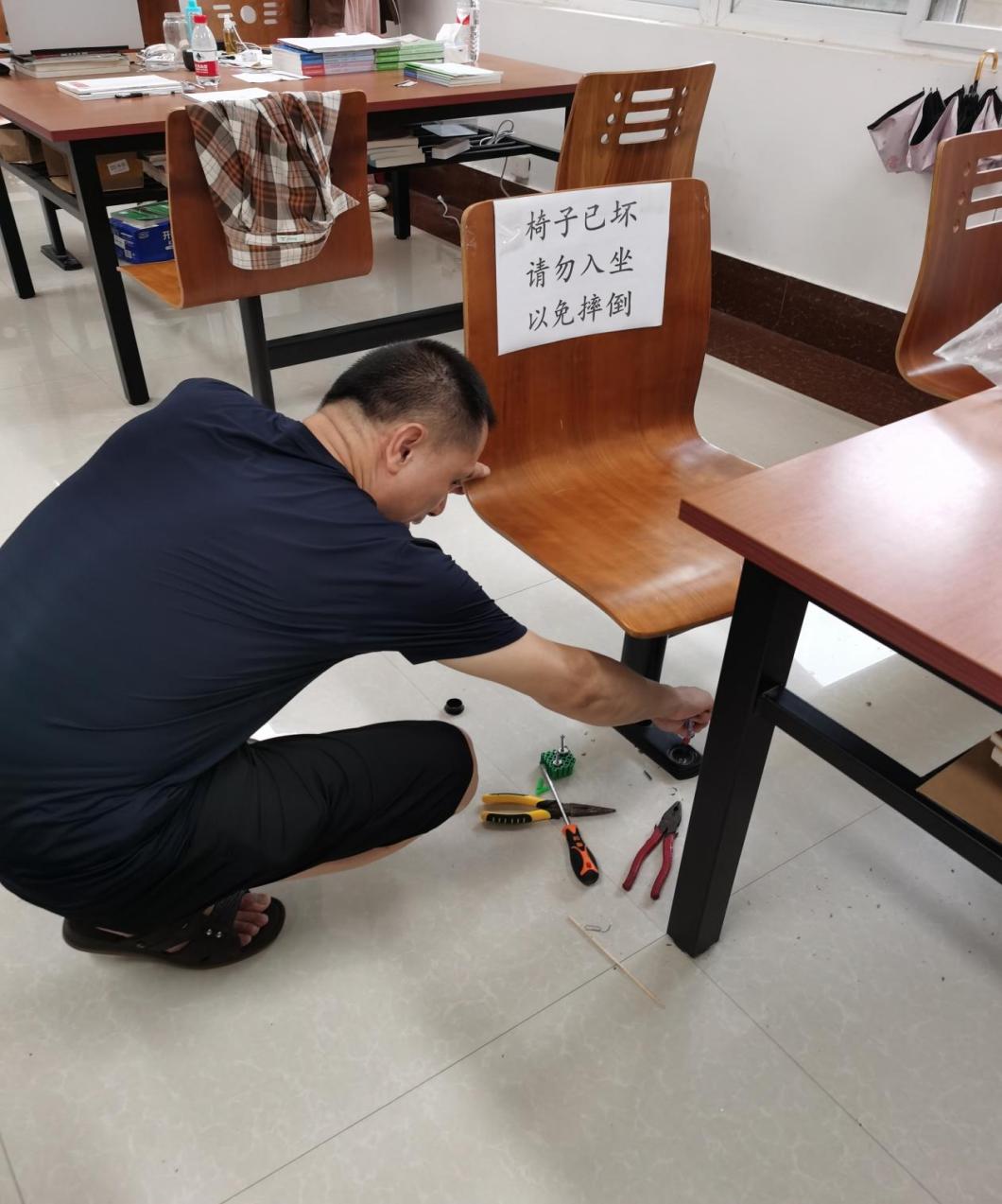 为认真贯彻落实学校开源节流、降本增效的相关要求,图书馆主动开展自习室桌椅检查维修工作,及时处理故障桌椅,将学生安全置于首位,防患于未然,为考研备考学生营造良好的学习环境。