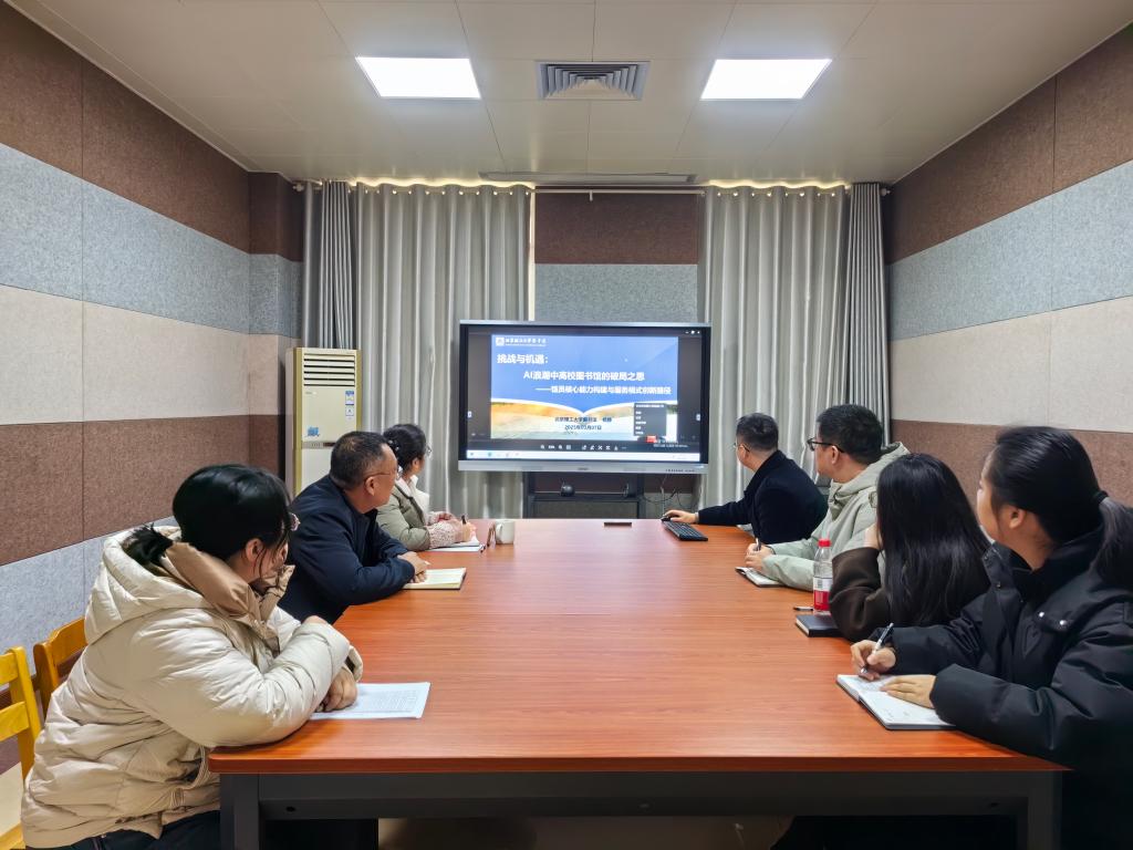 馆长谢晓明在总结讲话中指出:一是图书馆要立足服务学校学科建设发展方向,把握行业发展大势,不断加强传统文献资源建设的同时,强化知识服务体系的规划与设计,通过技术赋能与创新路径实现图书馆服务模式的转变,更好地适应数智时代的发展需求,提供更加智能化、个性化的服务;二是全体馆员要加强学习,不断更新专业知识储备,提升业务技能,实现图书馆管理与服务的更高站位和创新发展;三是AI技术的应用不仅是图书馆转型的关键,也是提升服务效能、满足师生多样化需求的重要抓手。