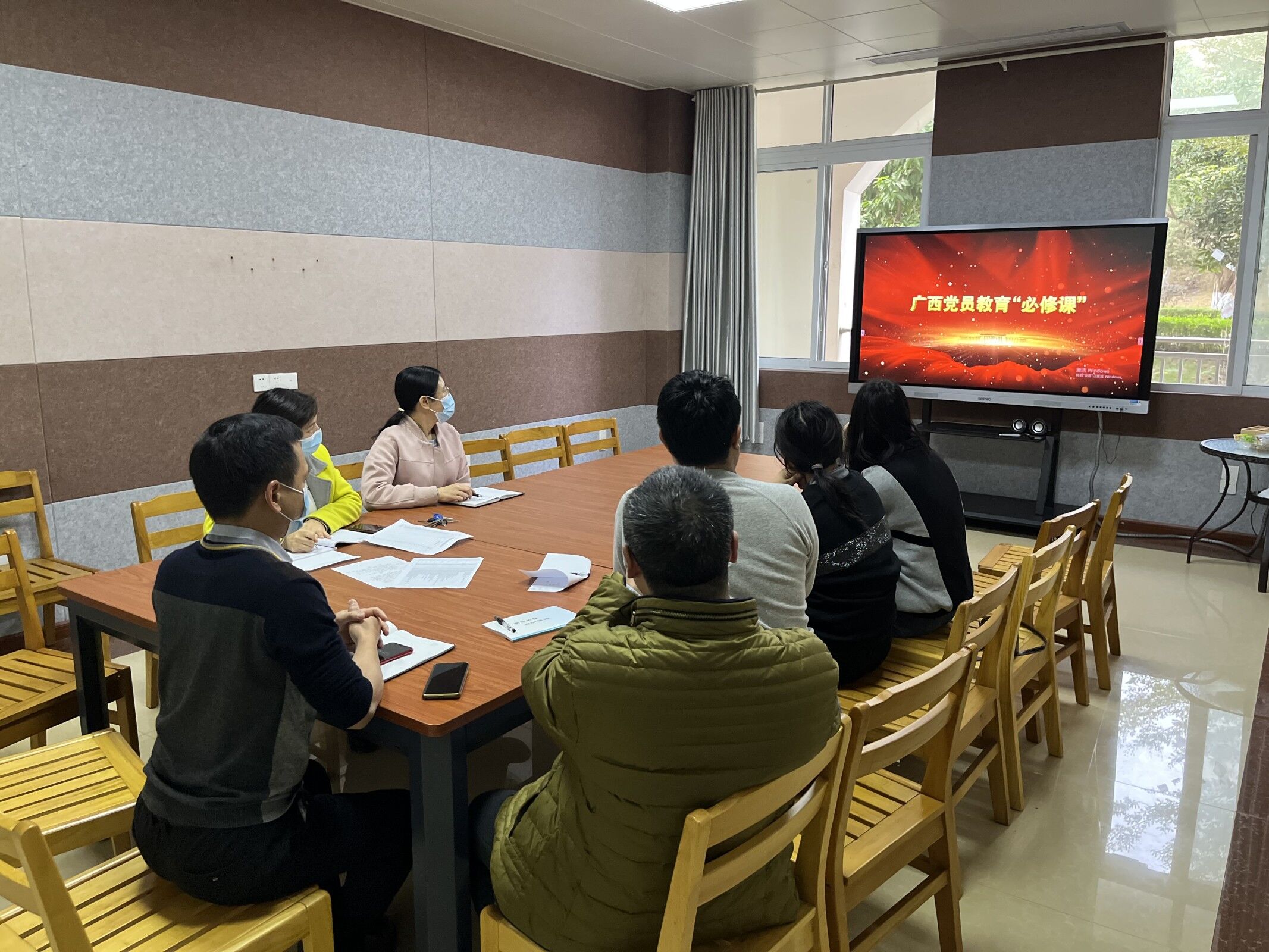 随后,全体党员还观看学习了广西党员教育“必修课”学习视频,听取党史学习教育中央宣讲团成员李君如主讲的《矢志践行初心使命 奋力创造新的辉煌》主题报告,进一步深入学习领会“不忘初心、牢记使命”的深刻内涵和重大意义。