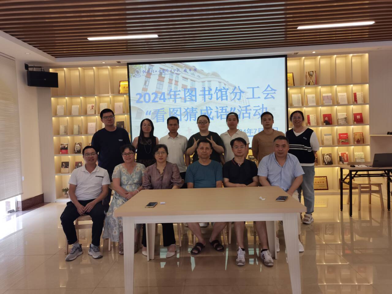 为丰富本分工会成员的文体活动,加强教职工的沟通交流,增强教职工的凝聚力,图书馆分工会于7月10日下午在图书馆七楼阅享空间举办“看图猜成语”活动。