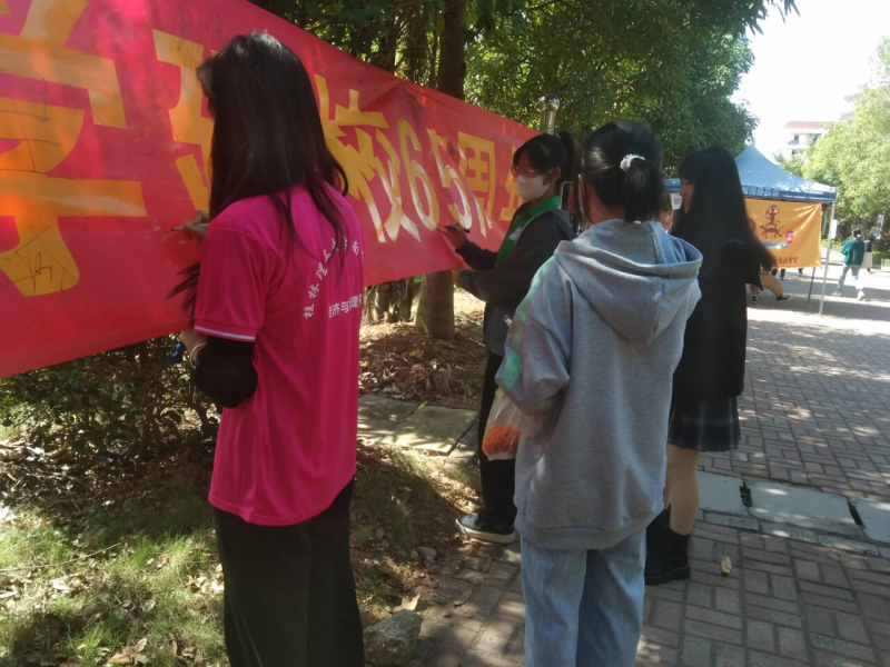 在“庆祝太阳集团2138建校65周年”横幅上签名活动,同学们更加了解学校的发展史,增强了同学们的爱校荣校精神,同时也增强了作为桂工人的自豪感和获得感。