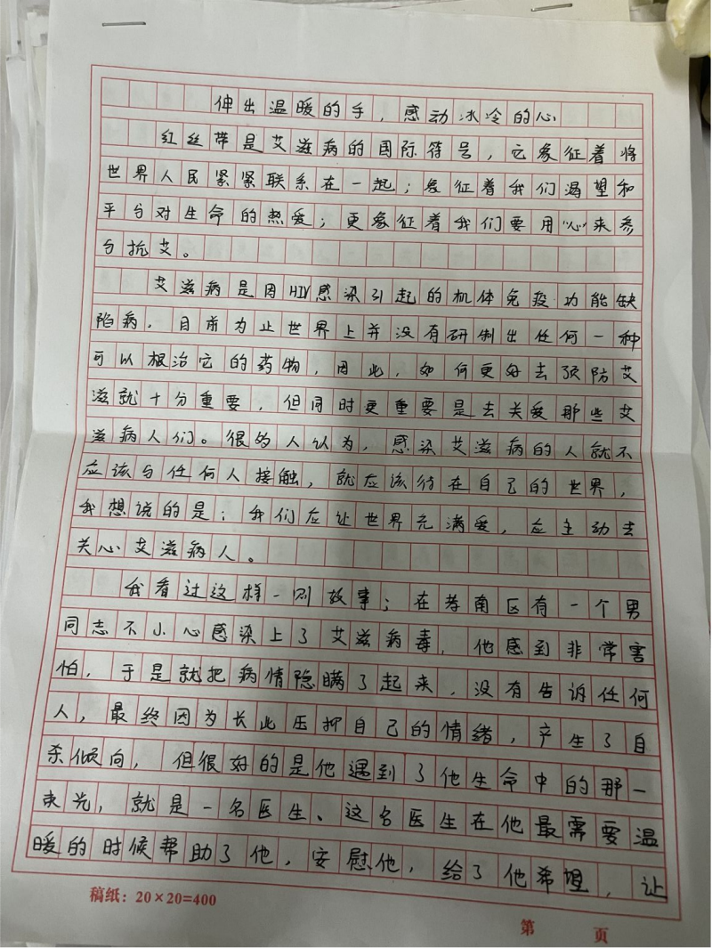 2021年12月1日是第34个“世界艾滋病日”,为增进广大学子对艾滋病的深刻认识,大力宣传普及艾滋病预防知识、提高学生抵御艾滋病的自我防范意识能力、唤起人们对艾滋病病毒感染者和病人的理解和关爱、加强社会责任感,分校团委学生部开展了为期五天的“预防艾滋病征文活动”、“预防艾滋病宣传画/手抄报征集活动”、“畅跑健步行,携手共防艾”、“线下预防艾滋病横幅签名”一系列主题宣传活动。