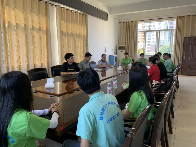 东门镇党委副书记覃默、团委书记庞艺斌、东门镇原组织委员梁忠俭同志向实践团成员介绍东门镇有关情况