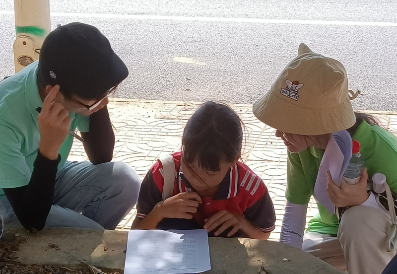 六年级学生在实践团成员的指导下完成问卷调查
