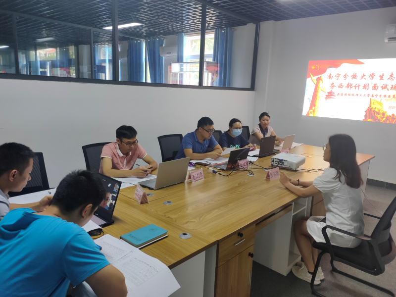 为进一步做好学校2021年西部计划志愿者招募选拔工作,按照上级团组织的相关文件通知,本着“公平”、“公开”、“公正”的原则,校团委于6月9日下午14:30在分校大学生创新创业基地事务管理中心会议室举行了2021年西部计划志愿者招募选拔面试。本次面试官由潘显鹏老师、梁喻深老师、黄观媛老师、韦选建老师、谢欢老师、陆吉瑞老师、于洋老师担任。