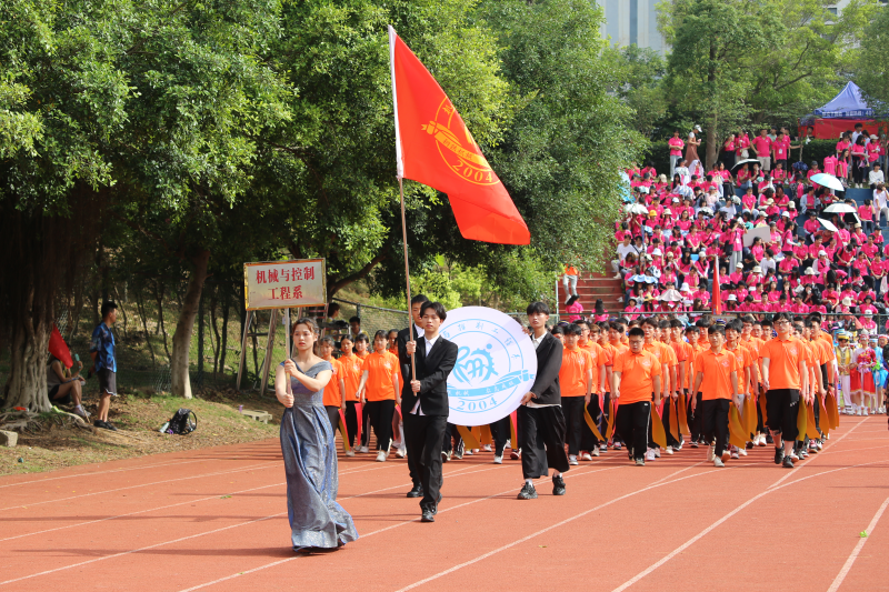 开幕仪式上,国旗班迈着铿锵有力的步伐手举国旗率先出场,接着是昂首挺胸高举彩旗的彩旗队,鲜花队则手捧鲜花以整齐划一的队列紧随其后,我系作为第一方块队,他们身着统一的服装,或穿着系服或穿着民族服饰,迈着整齐的步伐,带着昂扬的气势走过主席台前。锣鼓喧天,彩纸飞扬,舞狮队精彩的表演让观众们拍手叫好,身着传统民族服饰的舞蹈队也以轻快优美的民族健身操赢得满堂喝彩。钢铁机械,他们如大风压林,他们有豪气干云,他们整齐如一,腰杆笔挺,头正劲直。众志成城”他们坚信,是雄鹰,就该搏击长空;是蛟龙,必能畅游四海。他们坚信运动员凭着永不言弃的精神在校运会上定能努力拼搏,奋勇前进,争创佳绩,我们坚信接下来将是机械系运动健儿的荣耀时刻!