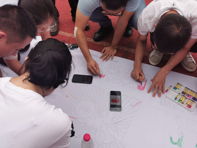 活动伊始,参与本次团日活动同学们在田径场跑道上的百米画卷前挥笔成画。一笔一画皆是历史精彩瞬间,画出的是中国百年光辉历程,同学们在绘画中,回顾建党百年历程。随后,全体同学共同举起百米画卷,齐唱歌曲《没有共产党就没有新中国》。在同学们激昂嘹亮的歌声中,可以感受到同学们对建党百年的激动与自豪。学生代表表示通过本次团日活动,明白了一百年的非凡奋斗历程中,离不开一代又一代中国共产党人顽强拼搏、不懈奋斗,而我们需要发扬前辈们的奋斗精神。最后,黄薇薇老师宣布本次百米画卷共绘活动到此圆满结束,并感谢各位同学的参与。