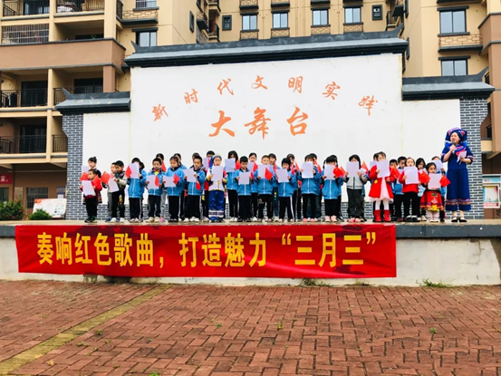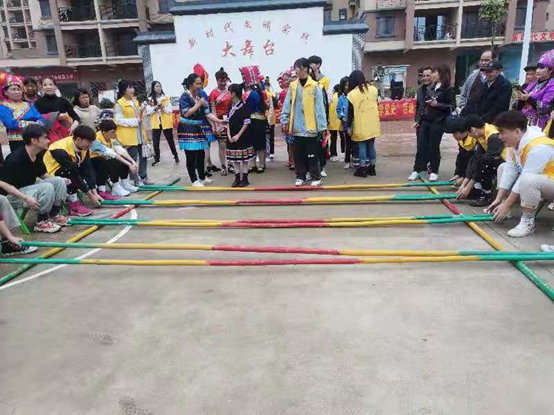 4月11日上午8:30,我校青年志愿者们身着红色志愿者工作服在文体广场上将搬桌椅、摆桌椅、邀请社区居民入座等一系列工作准备就绪。活动正式开始之际,现场上百名社区居民欢聚一堂,兴致高昂,在观看了由百合家园儿童、县魅力旗袍队、四所大学带来的精彩朗诵和歌舞表演之后,县委组织部副部长何汝灵同志进行宣讲党史并开展知识竞答,现场大家积极互动,踊跃抢答,热情高涨。接下来全体志愿者们在易地扶贫搬迁点为社区居民们提供了抛绣球、跳竹竿舞、绘彩蛋、踢毽子和抢凳子等一系列志愿服务活动。最后,大家学唱山歌、围成圈手拉手跳壮族舞蹈、摆出“三月三”文字造型,还品尝了美味的七色檽米饭。这一系列活动不仅让居民们近距离体会到壮族非物质文化遗产的独特魅力,看到民族传统文化代代相传、生生不息的生命力,也加深了大家对党的认识和提高了大家对党知识的浓厚兴趣。