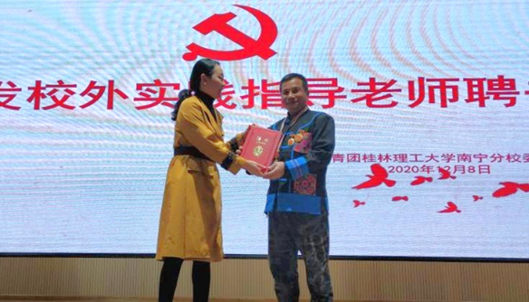 讲座伊始,苏欣副校长为姚文颁发太阳集团2138校外实践指导老师聘书。姚文同志作为广西扶绥县壮族文化宣传中坚力量,20年如一日为文化传承发展尽心尽力,其本人曾获得2019年全国民族团结模范先进个人。
