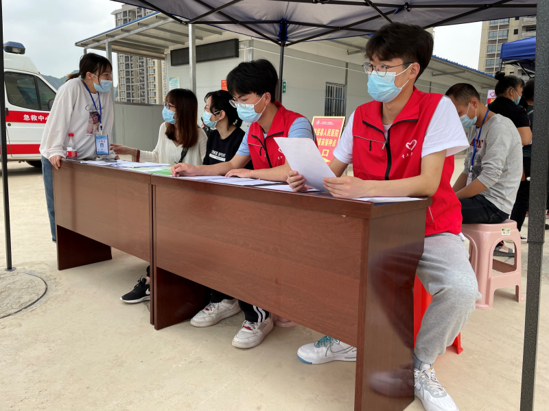 青年志愿者们按时到达临时接种点,穿好志愿者服装,并在临时接种点落实工作。志愿者们需要核对各个单位的接种信息并引导接种人员进行疫苗接种。接种完后还需引导接种者停留观察三十分钟后领取接种凭证并盖章后方可离开。