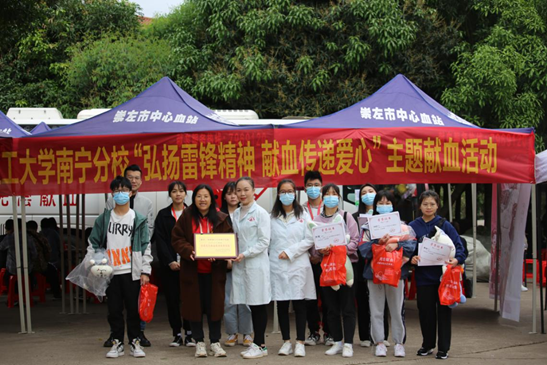 为了保障疫情防控常态化期间崇左市医疗临床用血需求、拯救更多患者的生命,同时大力弘扬雷锋精神,让桂工学子用行动传递“奉献、友爱、互助、进步”的志愿精神,分校团委携手崇左市中心血站于2021年3月20日至21日在校园俊逸园门前组织开展了以“弘扬雷锋精神,献血传递爱心”为主题的无偿献血活动。分校团委书记黄薇薇老师参加了本次活动。