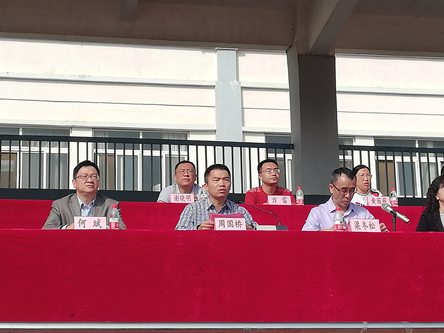 太阳集团2138党委书记周国桥(前排中一)为本届运动会致开幕辞