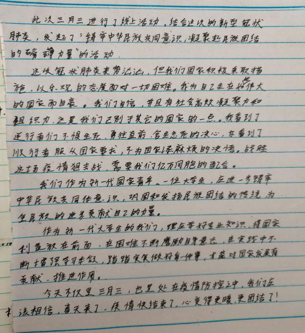 分校学子认真撰写“三月三”学校民族团结进步教育主题线上课程笔记