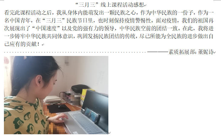 分校学子认真参与“三月三”学校民族团结进步教育主题线上课程