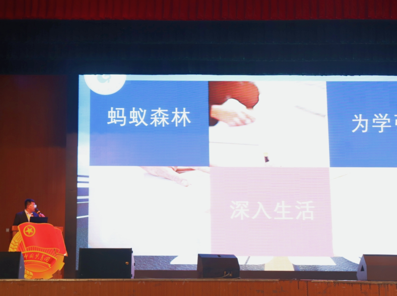 首先由主持人宣读此次述职大会评分细则,将从汇报人精神面貌及PPT展示两方面进行评分。其次,各校级团体代表依次上台进行本学期工作汇报总结,向我们展示了各团体本学期以来开展的各项工作及所取得的各项成绩、工作上的不足以及改进方法,并对接下来的团体工作计划安排以及长期发展的规划进行汇报。紧接着,是六系团总支学生会进行汇报,就各系所取得的成绩、举办的活动、工作上的不足及对未来的展望进行汇报。最后,由分校团委书记黄薇薇老师就各学生团体的工作汇报进行总结,对本学期学生骨干的工作表示肯定,她指出学生团体是学校联系学生的桥梁与纽带,是广大同学锻炼自己、为他人奉献、全面提高自身综合素质的平台,并对学生骨干提出了要求:一是要严格要求自己,努力提高自身素质;二是要积极开展工作,要努力多做工作,做好工作,期待同学们有更加饱满的精神与热情投身于工作中。在发言的最后,黄薇薇老师还向同学们分享了习近平总书记近年来的新年贺词。