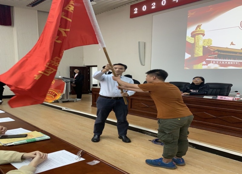 分校党委副书记唐承泽为实践代表授旗