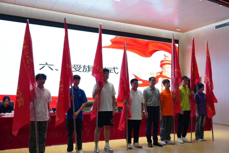 仪式上,分校团委介绍了今年社会实践工作情况。实践学生代表分别作交流发言。社会实践志愿者们进行了集体宣誓。党委副书记唐承泽老师为我校6支参加2024年暑期“三下乡”社会实践活动的团队代表授旗。随后,党委副书记唐承泽老师在讲话中对参加社会实践的老师和同学们致以亲切的问候,充分肯定了学校多年来始终高度重视大学生社会实践工作,在引导和帮助广大青年学生在上好与现实相结合的“大思政”课中“受教育、长才干、作贡献”,用眼睛发现中国精神,用耳朵倾听人民呼声,用内心感应时代脉搏,坚定信念听党话、跟党走。他希望大家深入农村和基层,在实践中了解国情、民情、社情,培养脚踏实地的品质、掌握实情的能力和奉献社会的责任感。以亲身实践深刻感受习近平新时代中国特色社会主义思想的实践伟力,进一步坚定理想信念,将个人成长的“小我”融入国家发展战略的“大我”之中,为中国式现代化挺膺担当,让青春在全面建设社会主义现代化国家的火热实践中绽放绚丽之花。