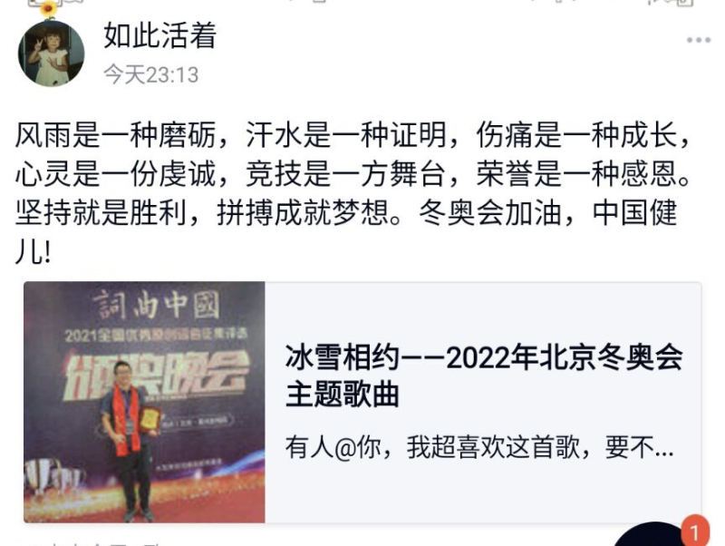 本次活动主要是让更多同学用自己的歌声表达对北京冬奥会的祝愿以及关注冬奥会的赛事,为我国健儿加油鼓劲。唱歌活动开展期间,同学们踊跃参与,一共收到111名同学的歌声和他们对冬奥会的祝愿。其中我们挑选出8名同学的作品与祝愿展示给大家看。并且还分享了10首积极向上的歌曲供大家参考,希望大家可以用自己的歌声来为我们北京冬奥会送上自己的祝愿。在此我们衷心祝愿2022年北京冬奥会顺利举办!