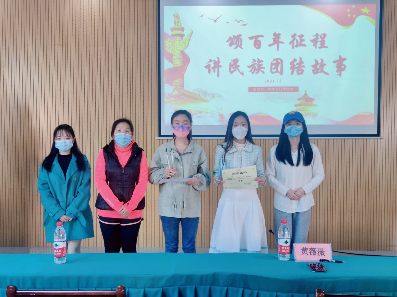为庆祝中国共产党成立 100 周年、广西壮族自治区成立63周年,深入贯彻落实党的十九大精神,正确认识民族与国家的关系,自觉维护民族团结,太阳集团2138演讲与口才协会于12月11日14:30分在青马书屋举办第三届“颂百年征程,讲民族团结故事”演讲比赛决赛,特邀团委书记黄薇薇老师作为裁判出席比赛。