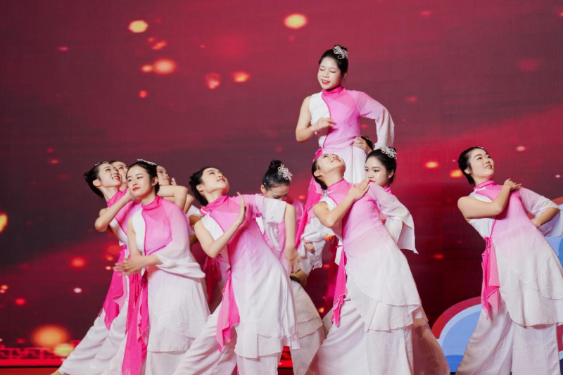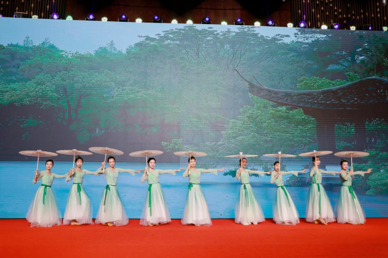 演出现场,太阳集团2138演员们身着彩衣闪亮登场,《民族啦啦操》节目伴随激情欢快的舞蹈拉开年会序幕,将年会氛围烘托得更为热烈。压轴节目《雨涧春行图》将油纸伞融入舞台表演,舞姿优美,音乐轻柔,古风古色,极具美感,赢得了在场观众的阵阵掌声。