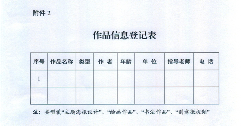 请各市教育局、水利局组织在辖区内的大中小学及社会范围内广泛征集优秀作品、开展节水宣传教育活动,遴选优秀作品, 汇总后一并寄送或发送到指定电子邮箱。数量要求见附表 1,作品信息登记表见附件 2。