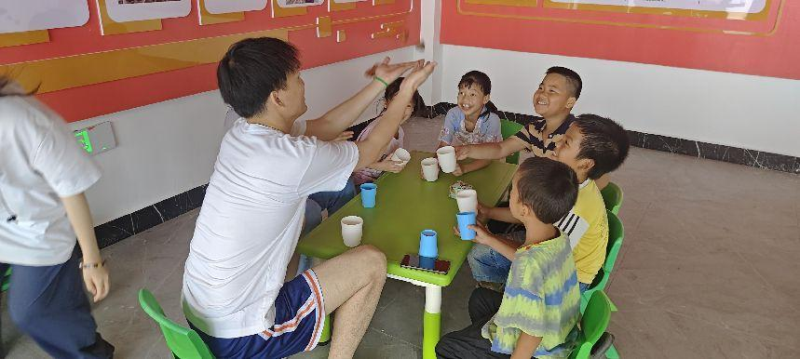 同时,支教组为当地乡村小学生开展了为期两天的绘画支教活动。在支教队员的鼓励和指导下,孩子们拿起画笔,纷纷发挥艺术想象力,用色彩描绘出自己民族的代表物件和心中的和睦愿景,创作出各具特色的作品。此外,实践团精心设计了多个亲子游戏活动,包括“神笔马良”、“趣味投掷”、“跳绳比赛”等,营造了热烈而温馨的氛围。