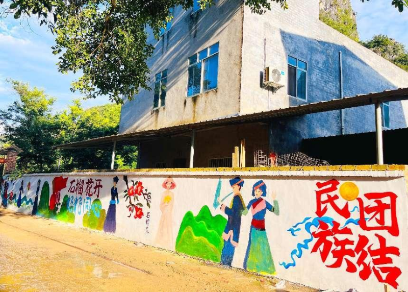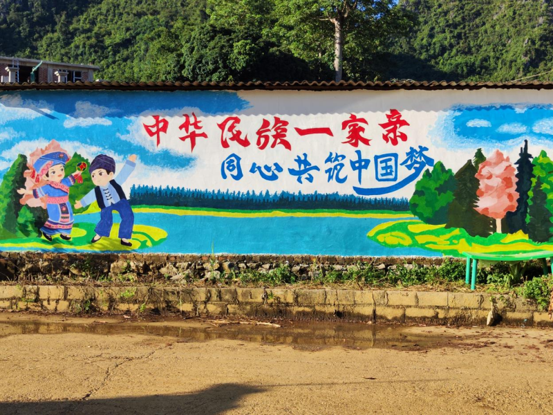 此次实践活动旨在利用艺术专业学生的专业优势,通过艺术形式促进民族团结与乡村振兴。实践团墙绘组分为两队,分别在三哨村和弄平村开展工作。经过深入了解村庄情况后,墙绘组成员结合当地乡风文化和产业特色,以民族团结、美丽宜居乡村为主题,精心策划并实施墙体绘画工作。他们历经四天的努力,完成了多幅生动形象的文化墙,谱写乡村建设新篇章,传递团结正能量,有效改善了乡村村容村貌。