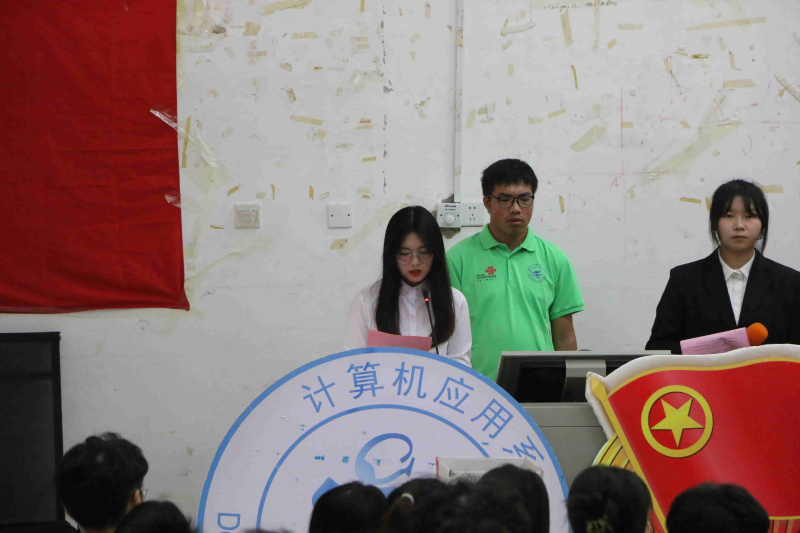大会开始,主持人致开幕词,介绍出席嘉宾、宣布大会开始。大会进行第一项:全体成员集体奏唱中国共产主义青年团团歌。大会进行第二项:计算机系团总支副书记罗燕妮发表讲话,总结过去一年的经验与不足,表达对各团体未来的展望。大会进行第三项:计算机系团总支书记黄观媛宣读计算机系各团体新任委员名单,宣读完毕进行授牌仪式。 大会进行第四项:计算机系团总支书记黄观媛老师上台发言并作工作展望。