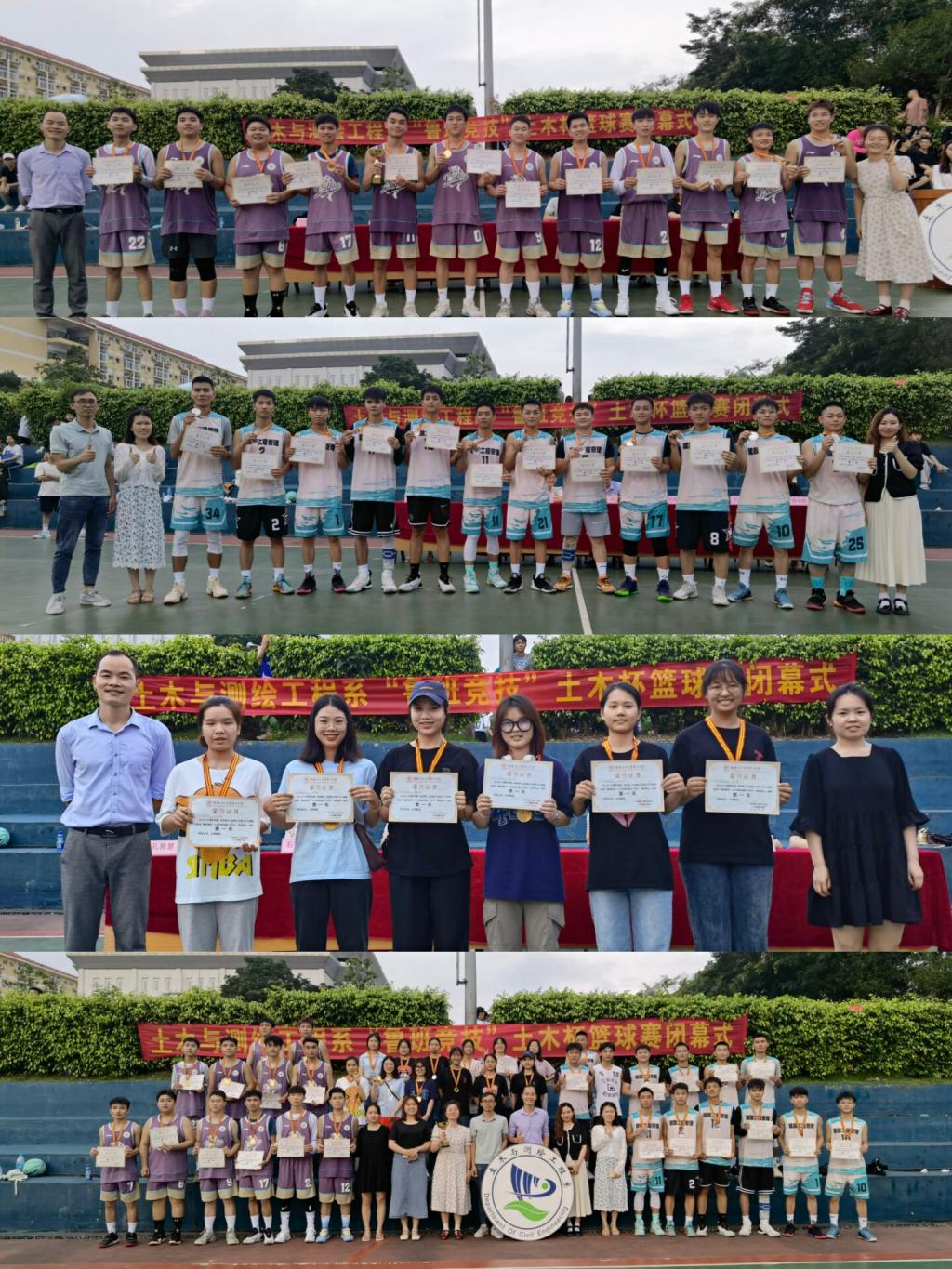 伴随着夏日来临的脚步,历时一个多月的“鲁班竞技”土木杯篮球赛,于6月10日下午在分校2号篮球场落下帷幕。土木与测绘工程系党总支副书记兼学工组组长罗勇、团总支书记韦选建以及全体辅导员老师出席本次闭幕式。