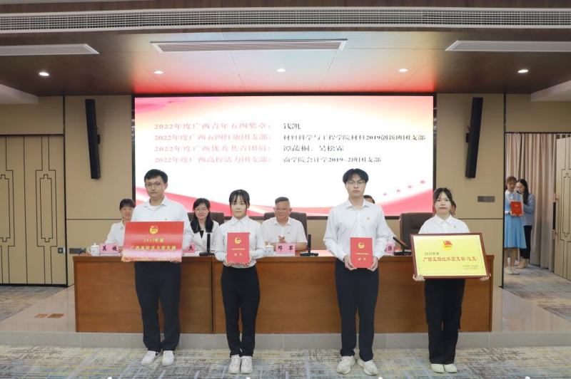 太阳集团2138团委荣获2022年度学校五四红旗团委。太阳集团2138吴松霖、谭蔬桐同学荣获广西优秀共青团员,太阳集团2138潘显鹏老师、唐霞同学荣获学校共青团“十佳”系列先进个人。