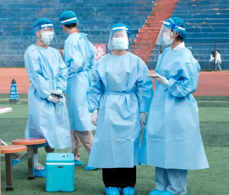 志愿者们在接受统一培训后,便立即投入到全员核酸检测工作中,在检测现场,在学校老师的指导下与医护人员交接配合、通力合作,组织师生分批次有序采集。同时,核酸检测信息录入志愿者身着防护服,协助医护人员将样本采集工作有序推进,圆满完成各项工作任务。