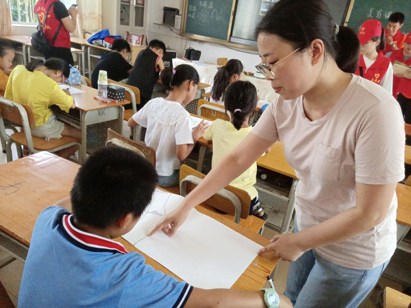 李肖然老师指点小朋友绘画