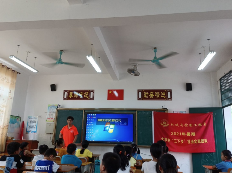 为深入学习贯彻习近平新时代中国特色社会主义思想,贯彻落实习近平总书记在党史教育动员大会上的重要讲话和庆祝中国共产党成立100周年大会讲话精神,让广大青年学生勇做担当民族复兴大任的时代新人,在社会实践中受教育、长才干、作贡献。7月16日,我系“凝聚青春力量,助力乡村振兴”社会实践队与岜盆乡综合文化站共同以“永远跟党走,奋进新征程”为主题,结合岜盆乡当地文化特色,以岜盆乡中心小学为线下实践基地,以学生家乡红色文化经典为实践基地,围绕党史学习、理论宣讲、乡情观察等方面开展内容丰富形式多样的社会实践三下乡活动。