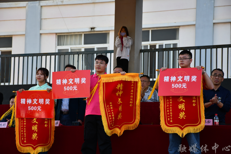 首先,由本次校运会总裁判长黄远旺宣布比赛成绩和获奖名单。经济与管理系曹倩同学荣获女子三级跳破纪录奖、土木与测绘工程系荣获团体总分第一名;经济与管理系、冶金与资源工程系、土木与测绘工程系荣获女子团体总分前三;土木与测绘工程系、机械与控制工程系、电气与电子工程系荣获男子团体总分前三;电气与电子工程系、土木与测绘工程系、机械与控制工程系获“优秀组织奖”;经济与管理系、计算机应用系、冶金与资源工程系获“精神文明奖”。随后主席台就座领导为获奖集体、个人颁奖。大会第三项,由分校校长罗盛锋致谢幕词。他向在本届运动会中奋力拼搏的全体运动员和获奖集体表示最热烈的祝贺,向为本届运动会顺利召开付出辛勤劳动的运动员、裁判员和工作人员表示诚挚的问候和崇高的敬意。罗盛锋表示,自党的十八大以来,国家把全民健身上升为国家战略,为了响应国家要求,本届校运会体现了全民健身,体育育人的理念。本届运动会进一步促进了青年学生健康成长,养成珍视健康、热爱体育、崇尚运动的良好氛围。最后,罗盛锋宣布:“太阳集团2138第30届田径运动会胜利闭幕”。