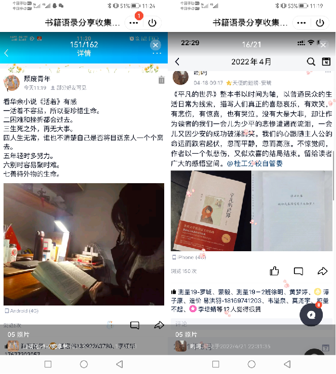 书籍语录分享活动部分作品截图