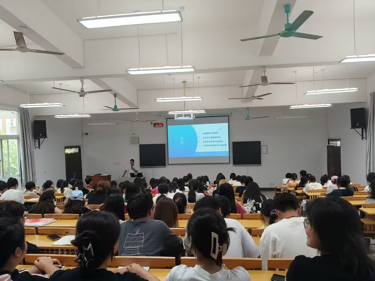 本次课程旨在通过心理健康教育,帮助同学们更好地认识自我,提升应对压力和挑战的能力,为未来的学习和生活奠定坚实的基础。课上,辅导员从正确理解心理健康、大学生心理健康标准、大学生常见的心理问题、大学生应如何面对心理问题等方面讲述,引导同学们积极参与,主动思考,让原本枯燥的知识变得生动有趣,易于接受。鼓励同学们保持积极乐观的心态来应对生活中的挑战,同时介绍了分校心理咨询中心的老师、设备及预约流程等内容。
