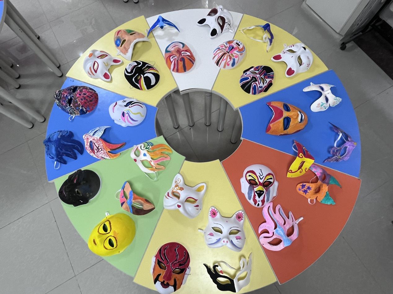 活动伊始,心理指导老师通过破冰游戏、主题歌曲、深呼吸放松训练法等帮助学生放松身心,进入自己的内心世界;在绘制面具阶段,心理指导老师引导同学们把自己的感受和情绪通过绘画的方式呈现在了面具上,先勾勒好自己面具的大致形状,再根据自己的情绪运用色彩填满勾勒的轮廓;最后,同学们通过展示作品的形式分享了自己的情绪感受,让同学们有了表达情绪的平台。